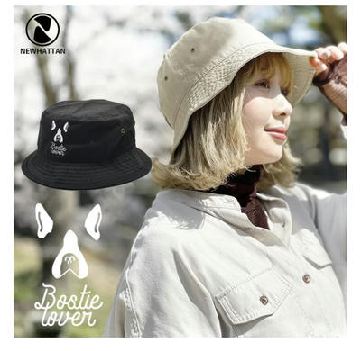 バケットハット Bostieloverバケットハット 帽子 バケットハット バケハ 犬 ボストンテリア 刺繍 シルエット つば 折りたためる ニューハッタン newhattan コットン 旅行 アウトドア 可愛い 春夏 おすすめ かわいい プレゼント ユニセックス