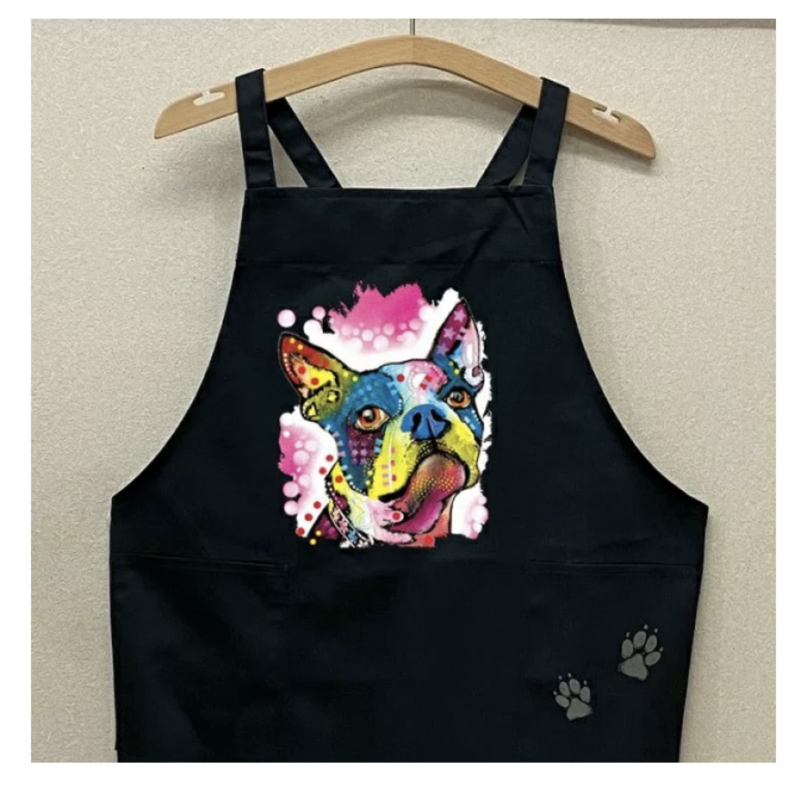 ネオンカラーのボストンテリアイラストがインパクト大なエプロンのご紹介です★