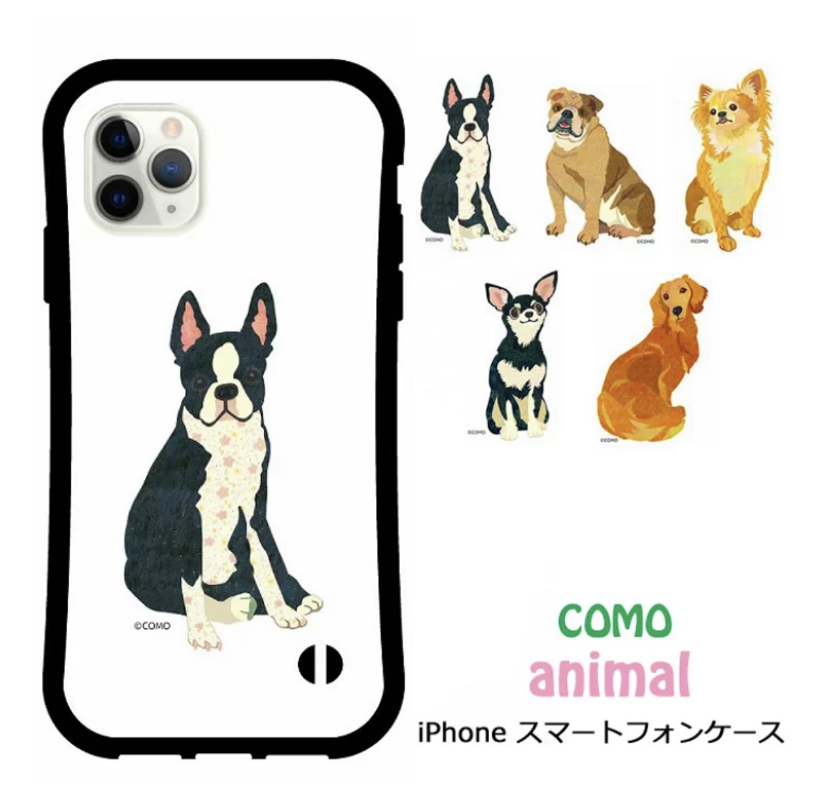 スタイリッシュな色合いと、パピーちゃんのような可愛らしいボストンテリアのイラスト。