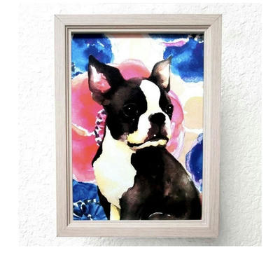 A4ポスター ボストンテリア ボステリ 花柄 犬 イラスト インテリア |