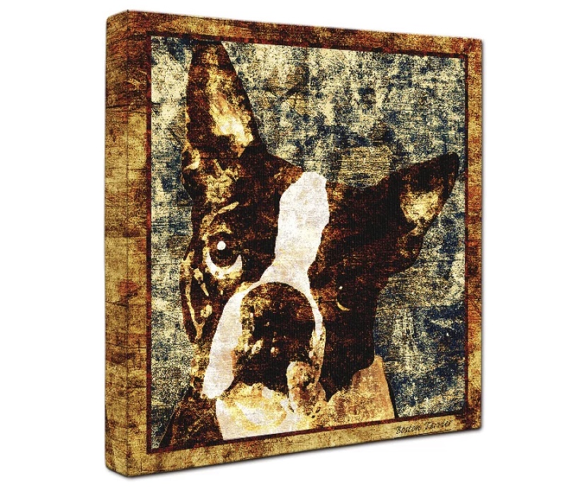 ビンテージ風でおしゃれな、ボストンテリアのアートキャンバスです!