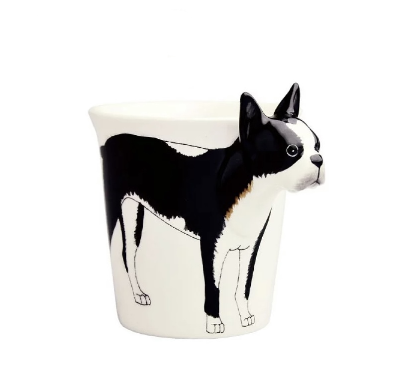 立体的でデザイン性があって可愛らしい、ボストンテリアのマグカップです。